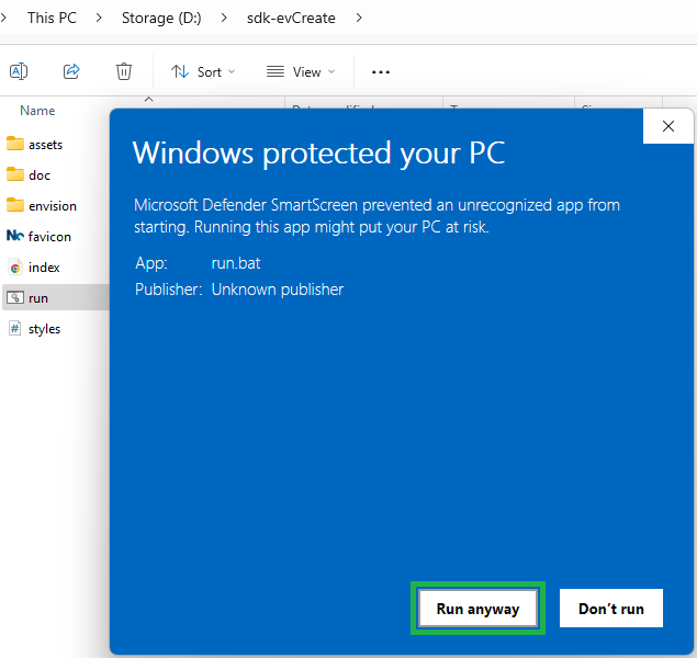 Click the Run anyway button.